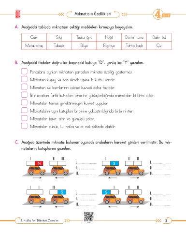 C. Aşağıda üzerinde mıknatıs bulunan oyuncak arabaların hareket yönleri verilmiştir. Bu mık-