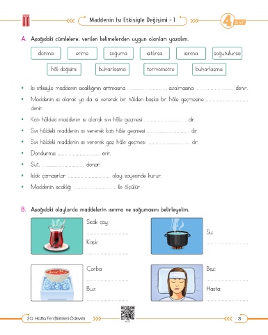 B. Aşağıdaki olaylarda maddelerin ısınma ve soğumasını belirleyelim.