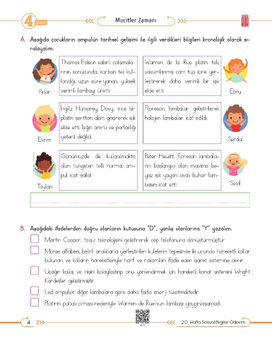 A. Aşağıda çocukların ampulün tarihsel gelişimi ile ilgili verdikleri bilgileri kronolojik olarak sı-