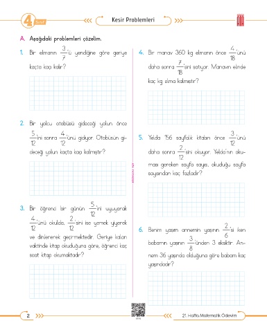 1. Bir elmanın ’ü yendiğine göre geriye 4. Bir manav 360 kg elmanın önce ’ünü