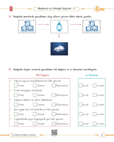 B. Aşağıdaki olaylar sırasında gerçekleşen hâl değişimi ve ısı alışverişini işaretleyelim.