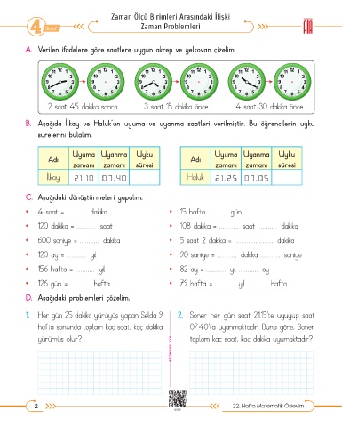 • 4 saat = ........... dakika • 15 hafta ........... gün