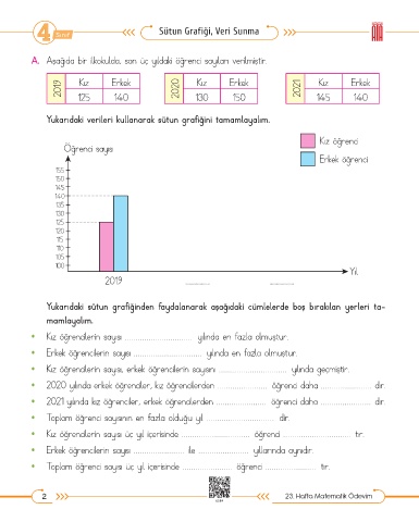 Yukarıdaki verileri kullanarak sütun grafiğini tamamlayalım.