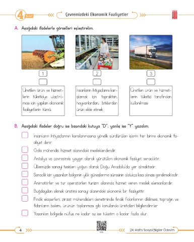 B. Aşağıdaki ifadeler doğru ise başındaki kutuya “D”, yanlış ise “Y” yazalım.