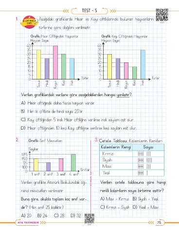 2. Grafik: Sınıf Mevcutları 3. Çetele Tablosu: Kalemlerin Renkleri
