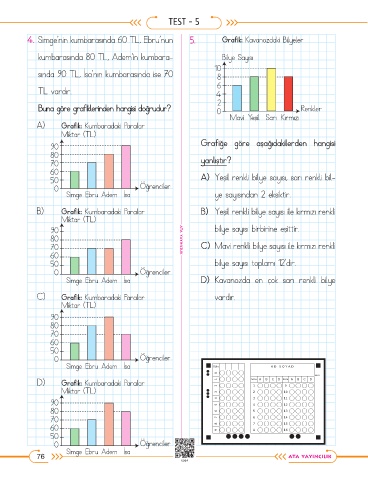 D) Grafik: Kumbaradaki Paralar 1 Soru A B C D Soru A B C D