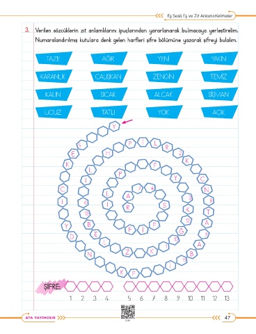 3. Verilen sözcüklerin zıt anlamlılarını ipuçlarından yararlanarak bulmacaya yerleştirelim.