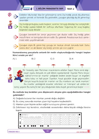 1 4 4 1. BÖLÜM: PARAGRAFTA YAPI TEST: 2