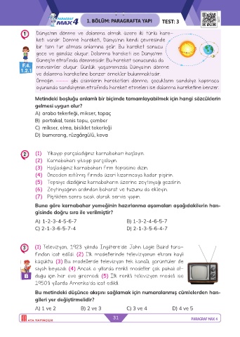 4 4 1. BÖLÜM: PARAGRAFTA YAPI TEST: 3 6477
