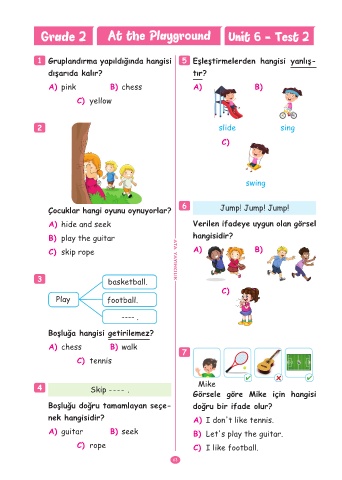 Grade 2 At the Playground Unit 6 - Test 2