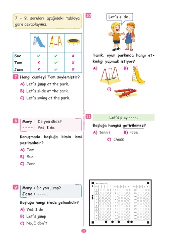 9 Mary : Do you jump? Ö.No 101620 Soru A B C D Soru A B C D