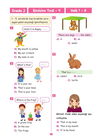 Grade 2 Revision Test - 4 Unit 7 - 8
