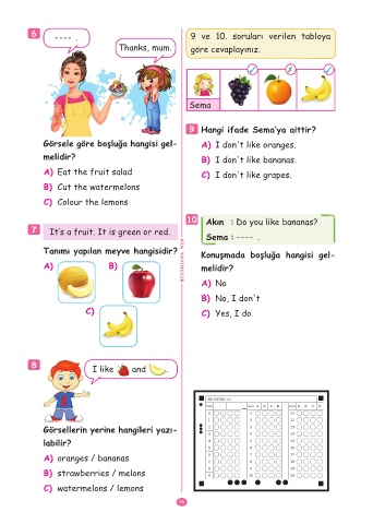 Görsele göre boşluğa hangisi gel- A) I don't like oranges.