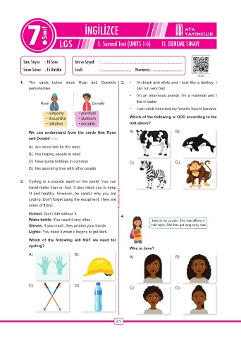 Page 42 - ATA YAYINCILIK 7.Sinif Ingilizce 28 Deneme Sinavi