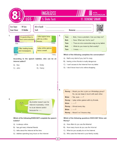 Page 44 - ATA YAYINCILIK 8. Sınıf 39 Deneme Sınavı İngilizce