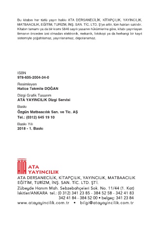 Bu kitabın her türlü yayın hakkı ATA DERSANECİLİK, KİTAPÇILIK, YAYINCILIK,