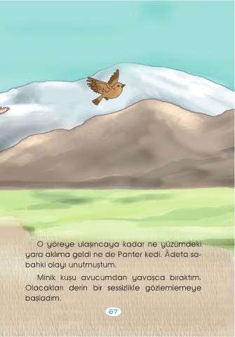 O yöreye ulaşıncaya kadar ne yüzümdeki yara aklıma geldi ne de Panter kedi. Âdeta sa- bahki olayı unutmuştum. Minik kuşu avucumdan yavaşca bıraktım. Olacakları derin bir sessizlikle gözlemlemeye başladım. 67
