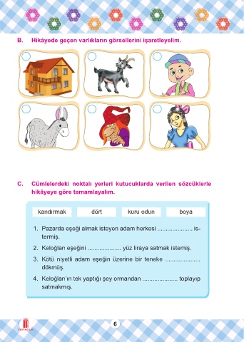 B. Hikâyede geçen varlıkların görsellerini işaretleyelim.