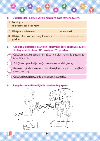 C. Aşağıdaki cümleleri okuyalım. Hikâyeye göre doğruysa cümle-