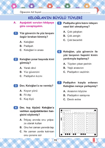 A. Aşağıdaki soruları hikâyeye 5 Padişaha göre kızını isteyen
