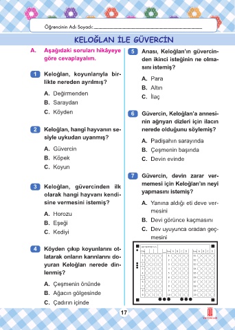 A. Aşağıdaki soruları hikâyeye 5 Anası, Keloğlan’ın güvercin-