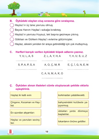 B. Öyküdeki olayları oluş sırasına göre sıralayınız.
