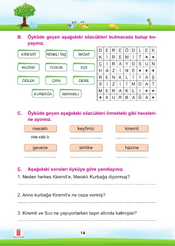B. Öyküde geçen aşağıdaki sözcükleri bulmacada bulup bo-