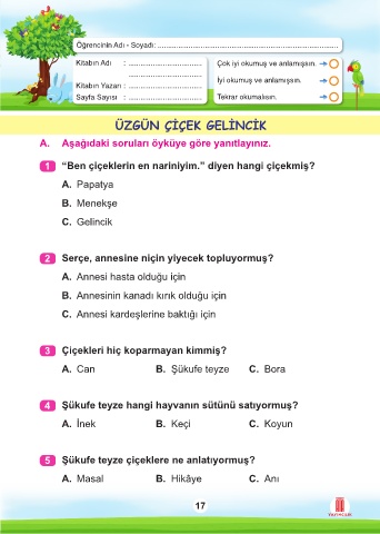 Kitabın Adı : .................................... Çok iyi okumuş ve anlamışsın.