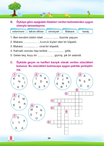 B. Öyküye göre aşağıdaki ifadeleri verilen kelimelerden uygun