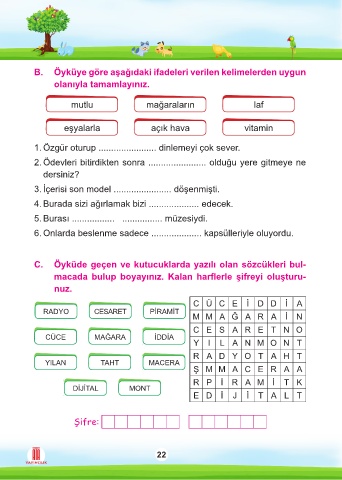 B. Öyküye göre aşağıdaki ifadeleri verilen kelimelerden uygun