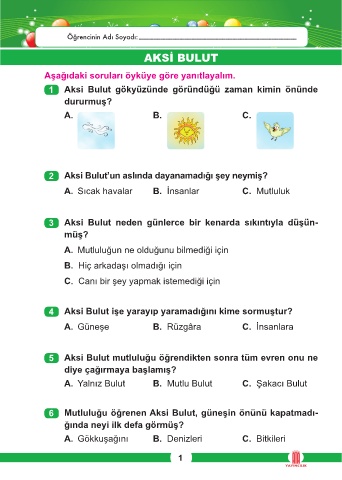 A. Yalnız Bulut B. Mutlu Bulut C. Şakacı Bulut