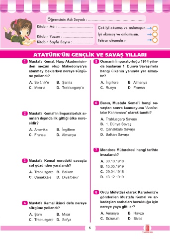 Kitabın Adı : .............................. Çok iyi okumuş ve anlamışsın.