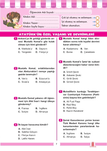 1 Ankara’ya ilk geldiği günlerde an- 5 Mustafa Kemal hangi ilden dön-