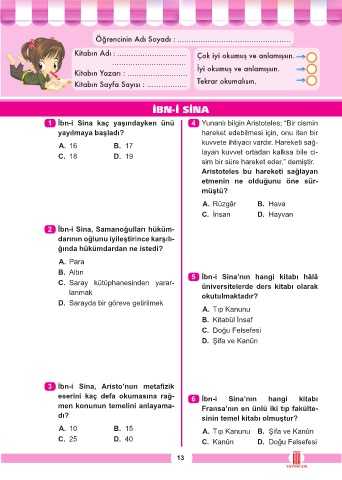 Kitabın Adı : .............................. Çok iyi okumuş ve anlamışsın.
