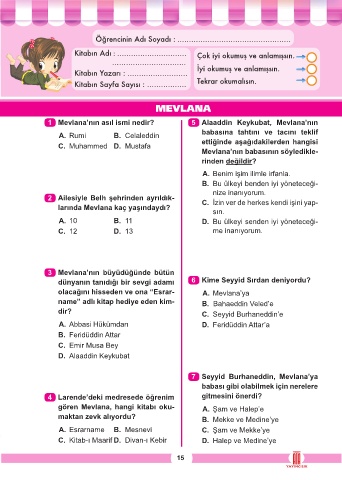Kitabın Adı : .............................. Çok iyi okumuş ve anlamışsın.