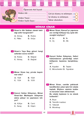 1 Sinan’ın Atlı Sekban olarak katıl- 5 Mimar Sinan, Kanuni’ye yapımına