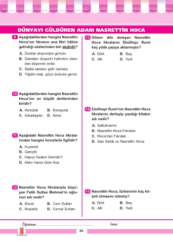 9 Aşağıdakilerden hangisi Nasrettin 13 Dilden dile dolaşan Nasrettin