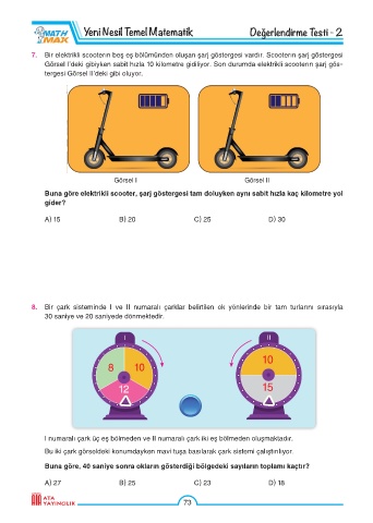 7. Bir elektrikli scooterın beş eş bölümünden oluşan şarj göstergesi vardır. Scooterın şarj göstergesi