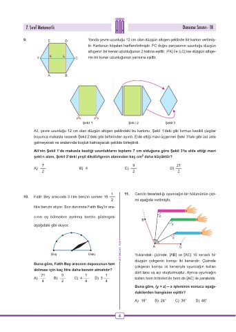 9. E D Yanda çevre uzunluğu 12 cm olan düzgün altıgen şeklinde bir karton verilmiş-