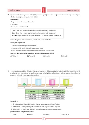 7. Sınıf Fen Bilimleri Deneme Sınavı - 17
