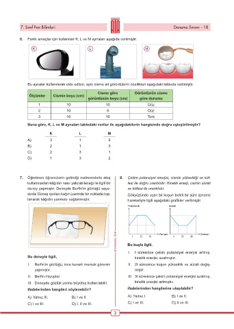 7. Sınıf Fen Bilimleri Deneme Sınavı - 18