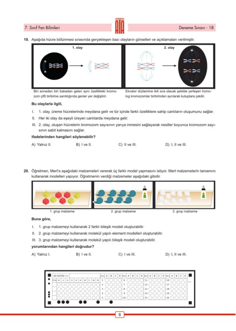 7. Sınıf Fen Bilimleri Deneme Sınavı - 18