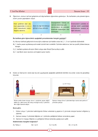 D) 4. kart Bohr atom teorisine ait bilgileri içeren karttır.