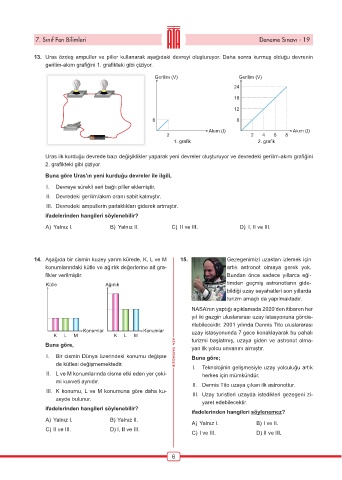 7. Sınıf Fen Bilimleri Deneme Sınavı - 19