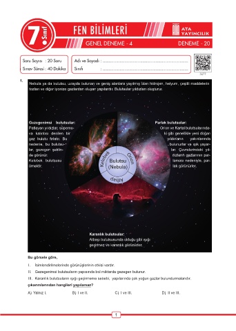 Page 154 - ATA YAYINCILIK 7. Sınıf 20 Deneme Fen Bilimleri
