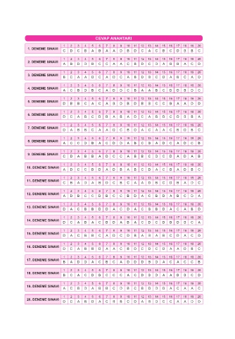 20. Deneme (Genel Deneme) 3 3 3 3 3 3 3 20. DENEME SINAVI D C A B D A C B B C D A B D C C A A D D