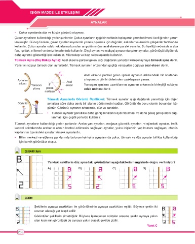 çüktür. Görüntü; aynanın arkasında, düz ve sanaldır.