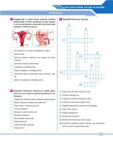 A Aşağıda dişi ve erkek üreme organları harflerle C Aşağıdaki bulmacayı çözünüz.