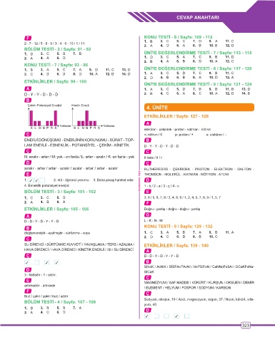 1. D 3. C 5. B 7. B ÜNİTE DEĞERLENDİRME TESTİ - 7 / Sayfa: 113 - 116