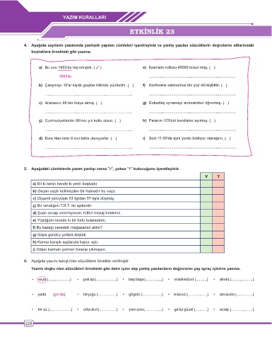 4. Aşağıda sayıların yazımında yanlışlık yapılan cümleleri işaretleyiniz ve yanlış yazılan sözcüklerin doğrularını altlarındaki